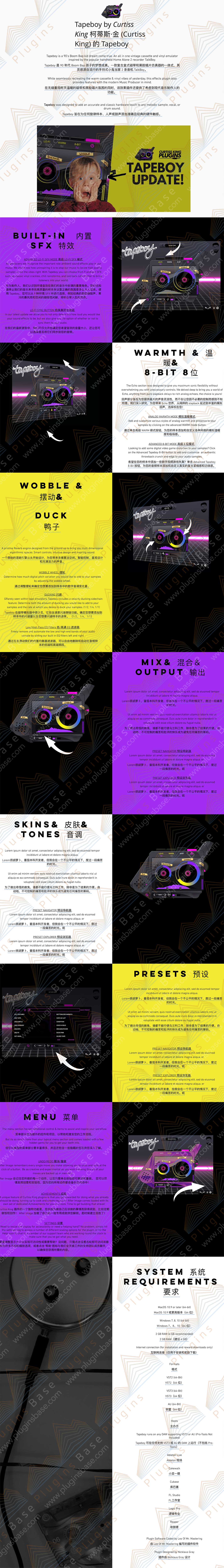 别上当,这些皮肤不仅仅是视觉美学。每一种皮肤都有一个独特的特征和色调来匹配它的颜色。从本质上讲,您现在拥有多个Tapeboy插件。这最终导致了无尽的组合和可能性。