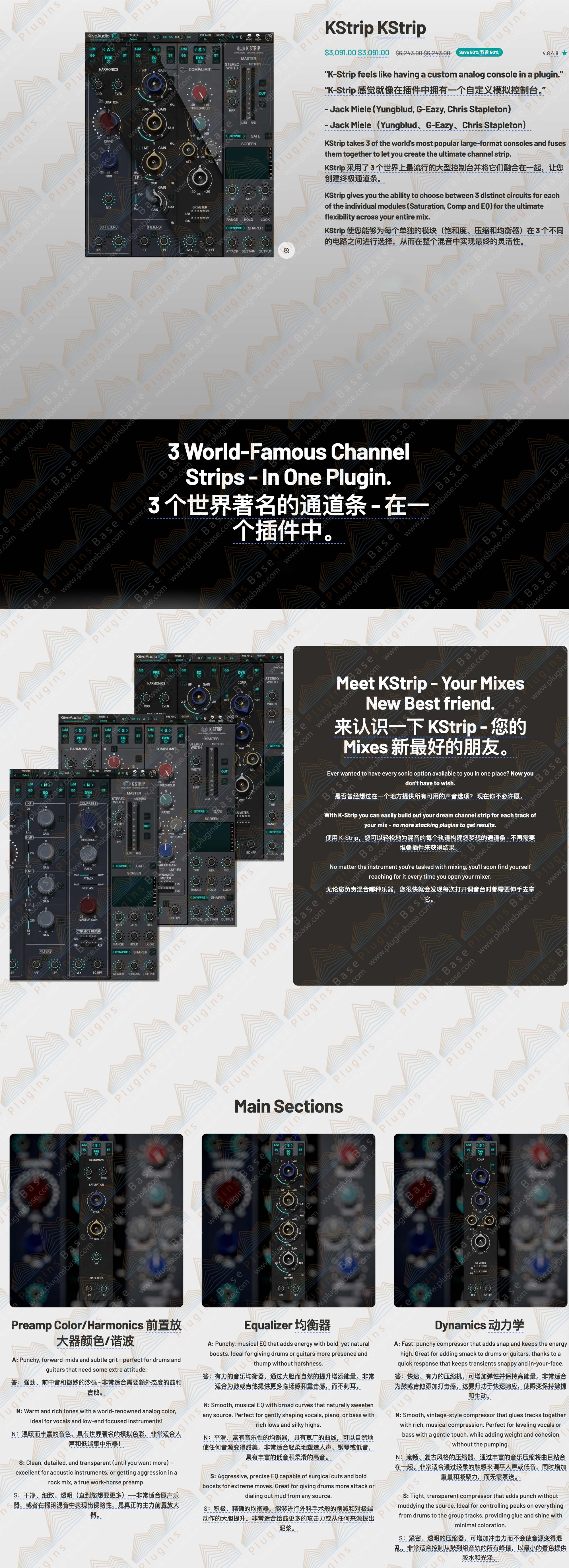 KStrip takes 3 of the world’s most popular large-format consoles and fuses them together to let you create the ultimate channel strip.