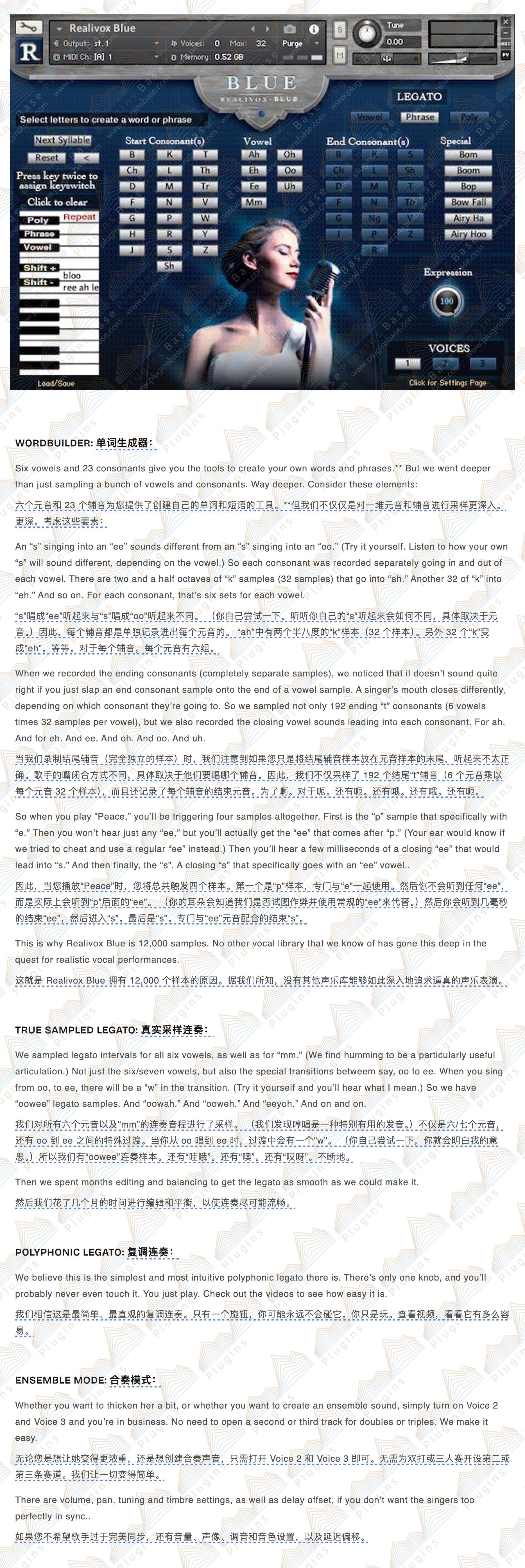 这就是 Realivox Blue 拥有 12,000 个样本的原因。据我们所知,没有其他声乐库能够如此深入地追求逼真的声乐表演。
