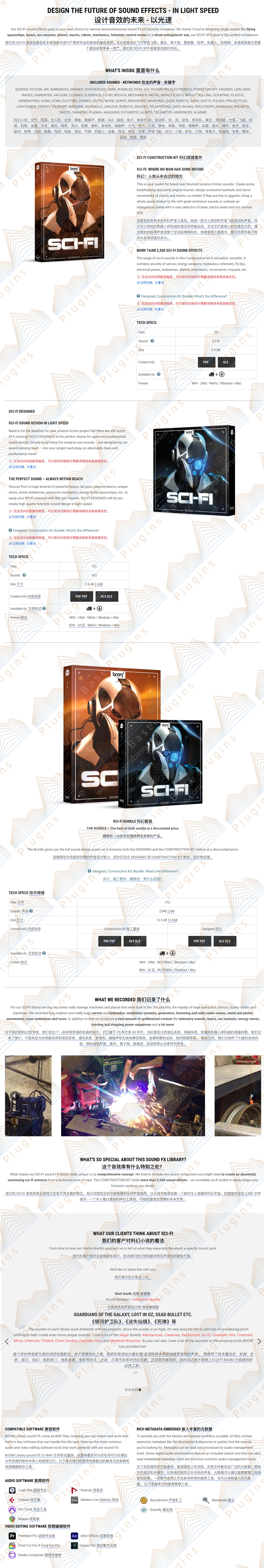 该构建套件中的科幻声音范围极其广泛。它包含伺服系统、能量武器、液压、遥测、飞越、电力、氛围、警报、机械、运动、冲击等的声音。