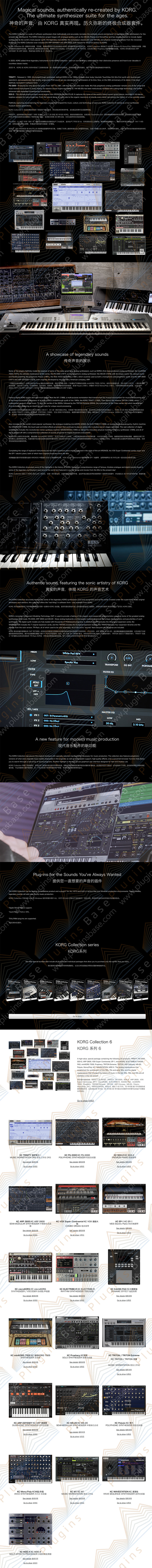 KORG Collection(KORG合集)是一套软件合成器套装,它以严谨精准的方式,复刻了KORG传奇合成器的纯正音色与运行特性,适配当下及未来的音乐创作需求。KORG Collection项目最初以MS-20、Polysix(六复音)、Mono/Poly(单音/复音)等模拟合成器为起点,随后逐步拓展,纳入了多款数字合成器——包括全球最受欢迎的传奇合成器microKORG(微KORG)、工作站经典机型M1与TRITON(海神),以及源自知名合成器Prophecy(预言)的物理建模合成技术。此外,KORG Collection甚至还包含ARP ODYSSEY(奥德赛)与ARP 2600这两款经KORG复刻、重获21世纪新生的经典合成器。