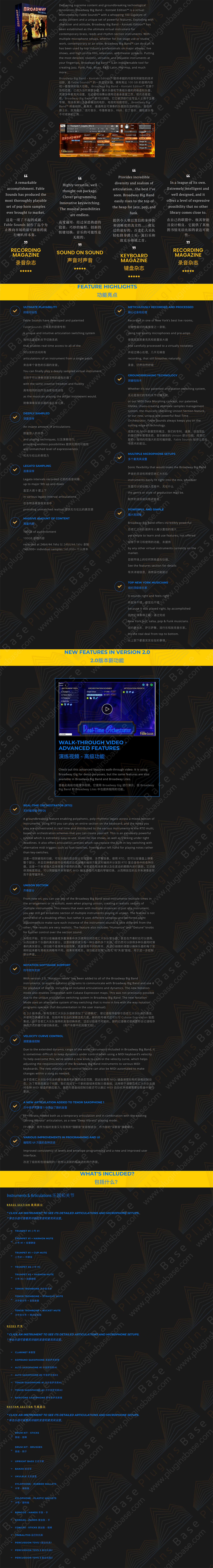 Delivering supreme content and groundbreaking technological innovation, Broadway Big Band – Kontakt Edition is a virtual instrument by Fable Sounds with a whopping 100 Gigabyte of audio content and a unique set of powerful features. Exploding with character and attitude, Broadway Big Band – Kontakt Edition has been established as the ultimate virtual instrument for contemporary brass, reeds and rhythm section instruments. With multiple microphone setups, whether for live stage use or studio work, contemporary or an oldie, Broadway Big Band can do it all. It has been used by top industry professionals on major albums, live shows, and high profile film, television, and theater projects. Putting the most detailed, realistic, versatile, and playable instruments at your fingertips, Broadway Big Band™ is an indispensable tool for creating Jazz, Funk, Pop, Blues, R&B, Latin, Hip-Hop, and much more…