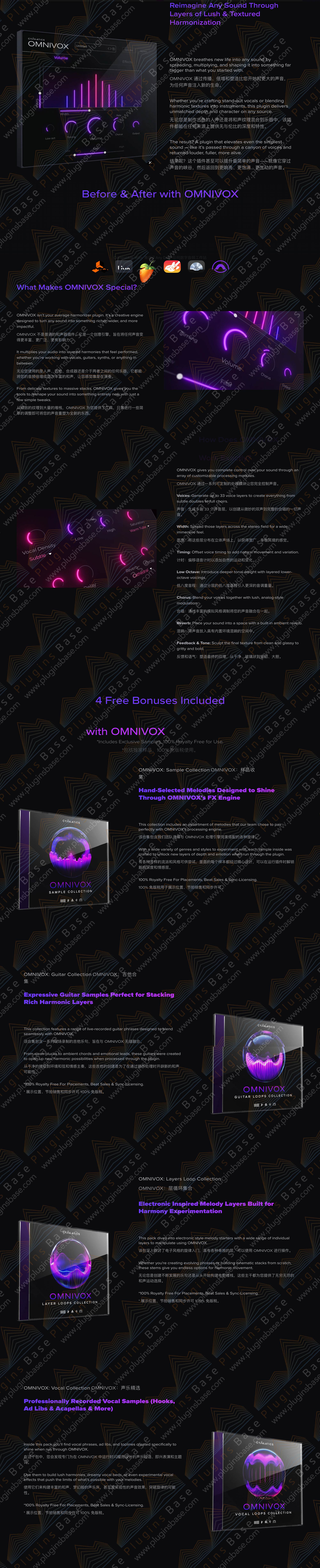 OMNIVOX不仅仅是一个普通的和声插件。它是一个创意引擎,旨在将任何声音变成更丰富、更宽广、更有影响力的东西。