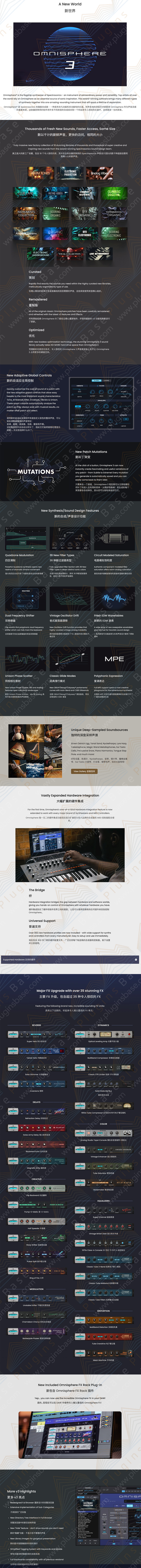 所有经典的 Omnisphere 原始音色补丁(patch)均经过精心重新制作,并融入了最新 v3 版本的功能与效果器,焕发出全新活力。