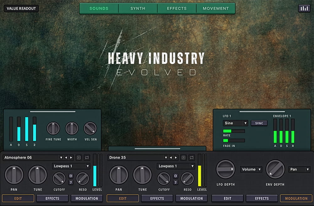 Heavy Industry Evolved 是原版 Heavy Industry 音色库的升级版本,针对完整版 Kontakt 8.3 打造,成为适合配乐创作的实用工具。基于原版的黑暗氛围、持续音、过渡音效与工业类效果采样,将原始声音素材转化为可实时演奏、动态可控的乐器,用于塑造张力、氛围与冲击力。